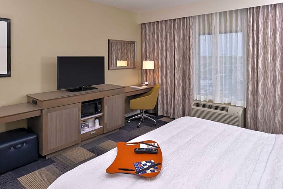 This mobility accessible, one-room, non-smoking studio suite features one king-sized bed featuring our clean and fresh Hampton bed. The bath is equipped with accessible roll-in shower. The suite features a sofa bed, microwave, refrigerator, wet bar, comfortable soft seating, a HDTV, and easy to operate alarm clock/radio. The free WiFi will help you stay connected while on the road. If you prefer not to work at the desk, you can use the convenient lapdesk instead. You'll also enjoy the convenience of having a coffeemaker with tea service and iron/ironing board in your room. Any corresponding photo may not reflect the specific accessible room type or room feature.